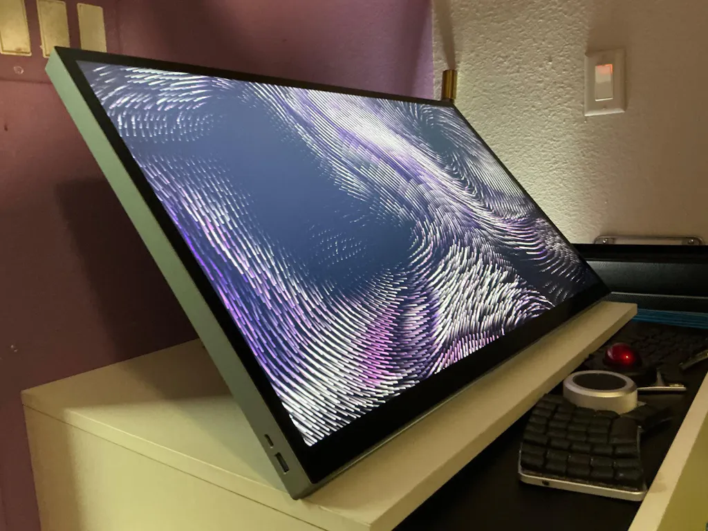 Our innovative Aspekt Fold Stand smoothly lowers Aspekt's ultrawide screen folds down to your desk for drawing or taking notes, then raises back up for everyday use.