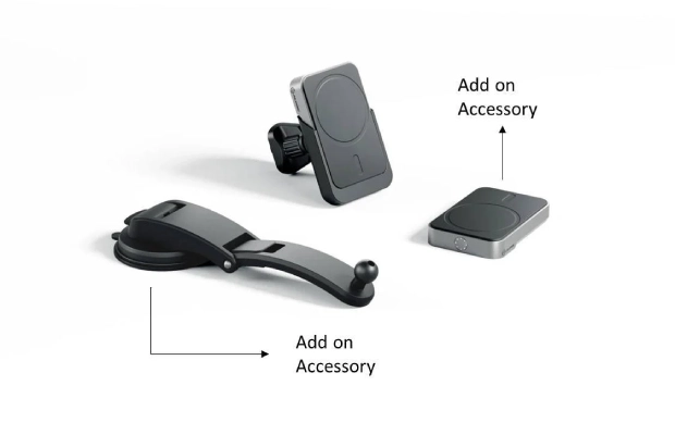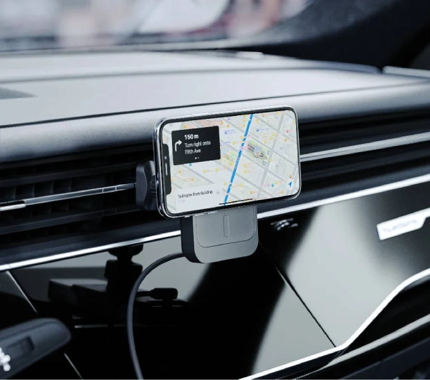 This wireless charging pad is a compact, 15W MagSafe-compatible Qi charger and can be used slotted into the dock/car mount, or by itself if plugged into a USB-C power source.